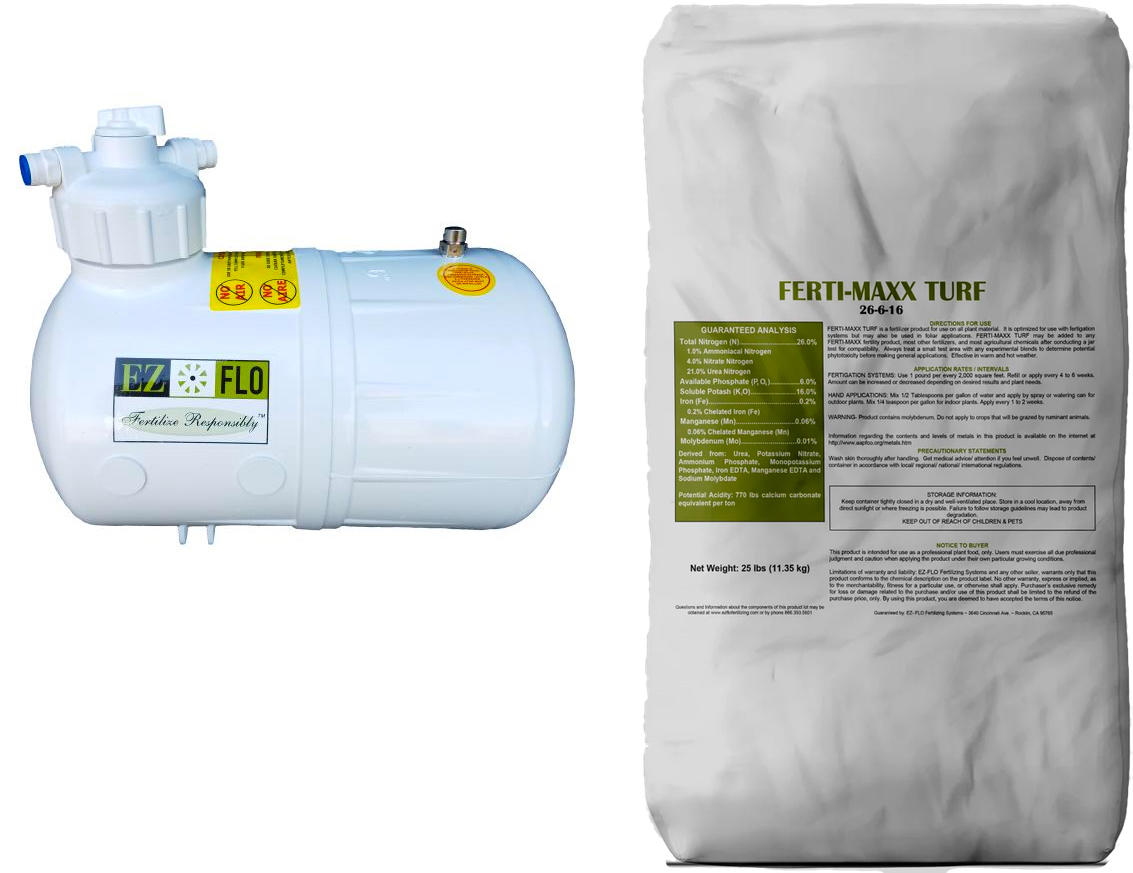 EZ-Flo injectors are popular in lawn irrigation applications due to their ease of installation and use. They work on the Venturi effect, meaning it’s almost harder for them not to work than to perform as they should due to using pressure differential physics instead of moving parts. If the mainline they are installed on is ¾” to 1”, no additional parts are needed. If the mainline is larger than 1”, all that is needed is the correct sized EZ-Flo Ball Valve Coupling.